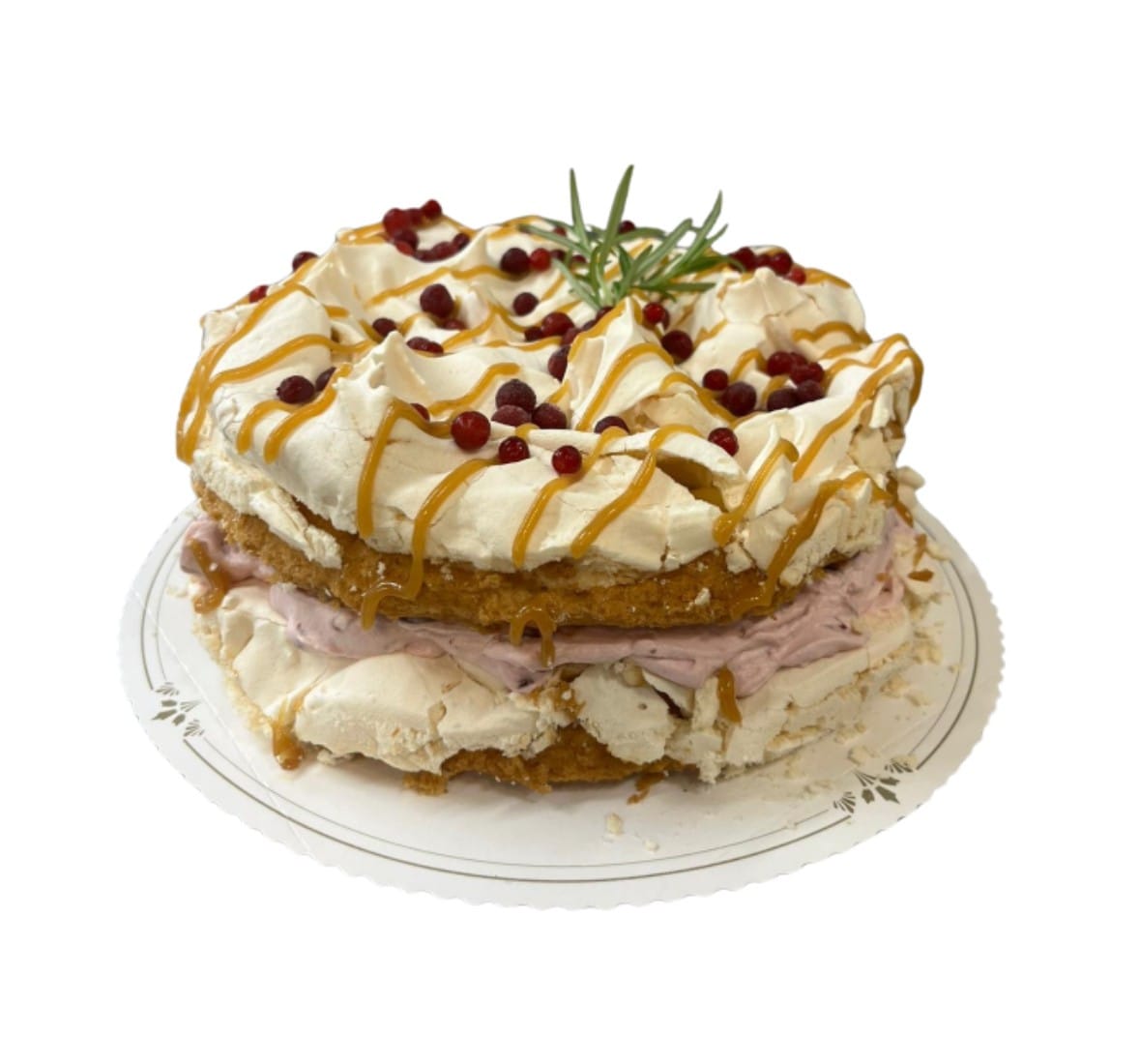 Suussasulava kakku puolukka- kinuskitäytteellä ja tästä kakusta riittää 10-12 hengelle.